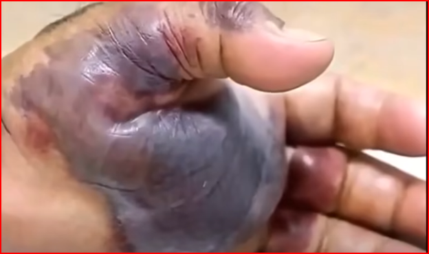 What started as a small sting turned into a horrifying medical emergency. This terrifying image shows a hand severely swollen and blackened—an advanced infection that spread rapidly within hours. Doctors believe it may have been caused by a spider or insect bite, or possibly an aggressive form of necrotizing fasciitis, also known as flesh-eating bacteria. If you ever notice swelling, intense pain, or discoloration like this after a bite or injury, seek emergency medical help IMMEDIATELY.